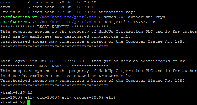 In particular, NFS typically relies on the client to enforce access controls – in corporate networks where all systems are centrally controlled, this isn’t a problem. If you can connect a rogue device however (or compromise another device on the network), then you can access files belonging to other users just by having the same user ID as the owner of the file. From a Linux system you have root access to, that’s fairly easy to achieve :-). In some cases, if you’re root on your machine, the NFS server will let you access any files root can.